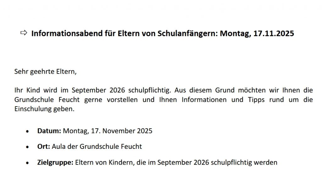Informationsabend für die Eltern unserer zukünftigen Erstklasskinder